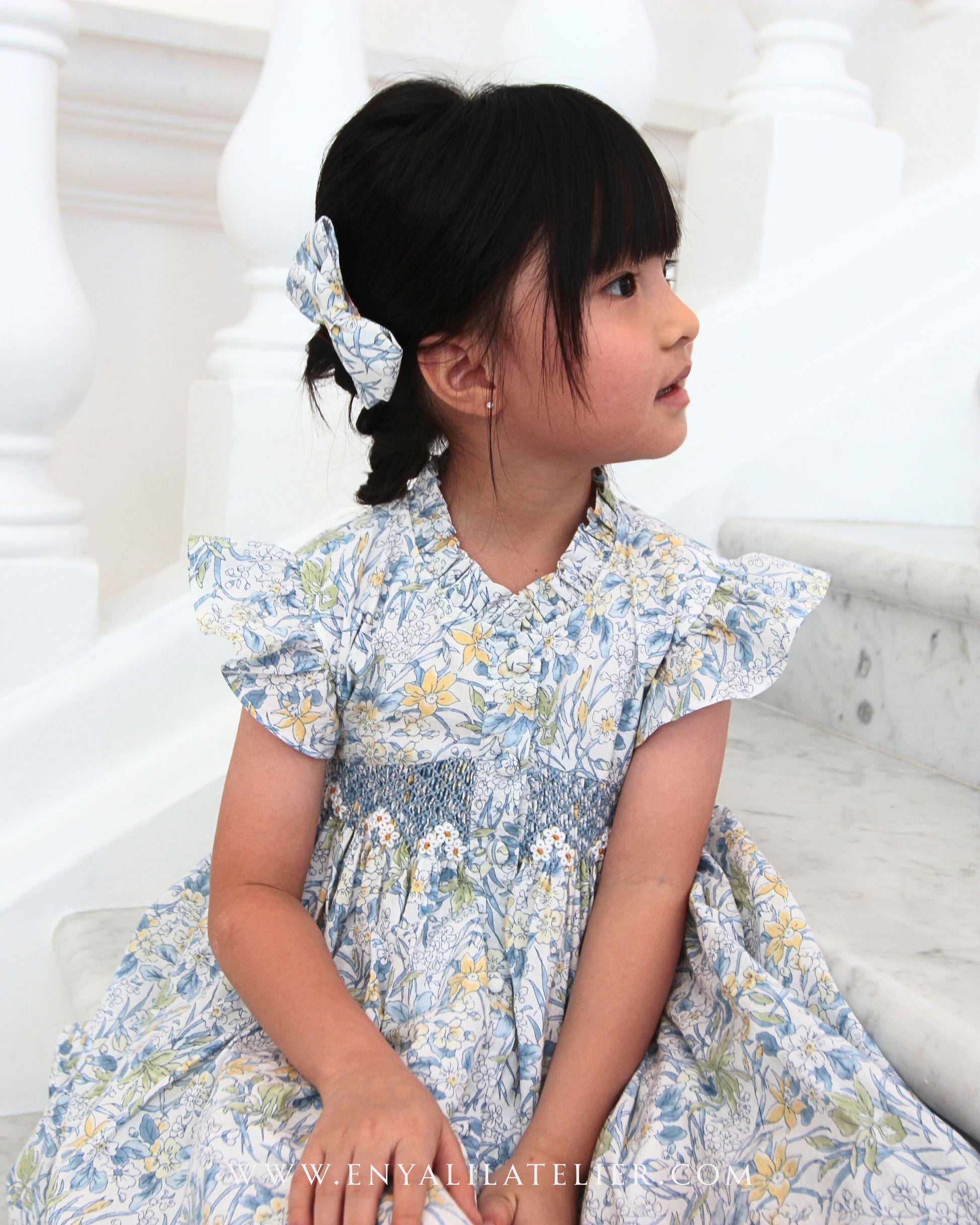 Enhance your child’s wardrobe with our Sophie Dress, meticulously crafted from exquisite Liberty – English Garden – Ricardo Y fabric. The fabric draws inspiration from the tranquil cottage gardens of quaint country villages, featuring refreshing hues of blue and yellow flowers.